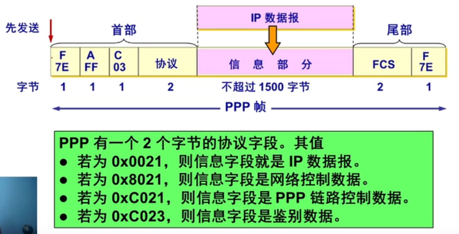 - PPP帧的首部和尾部分别为4个字段和2个字段。所有PPP帧的长度都是整数字节