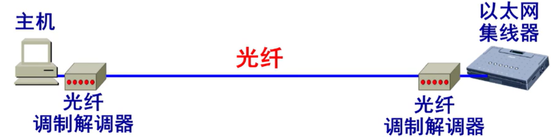 1)使用光纤扩展,将主机通过一根光纤和一对光纤调制解调器连接到远端的集线器。