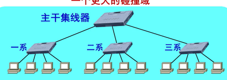 2)使用集线器扩展,通过使用集线器,可以构建更大的、星型结构的以太网。