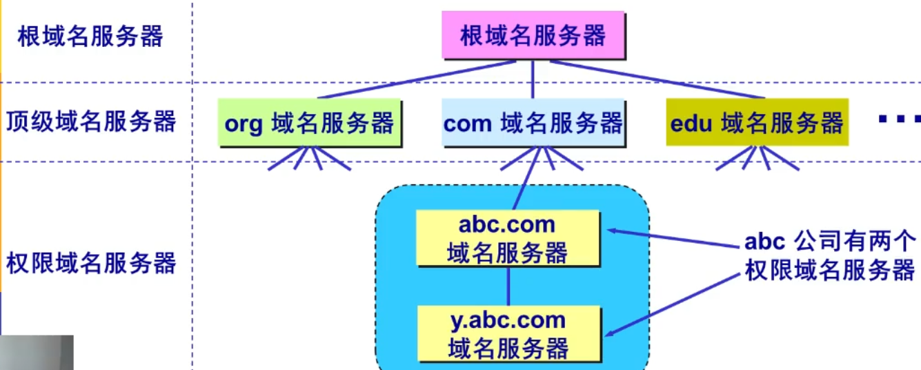 - 每个区设置相应的 权限域名服务器,用来保存该区中所有主机的域名-IP映射;