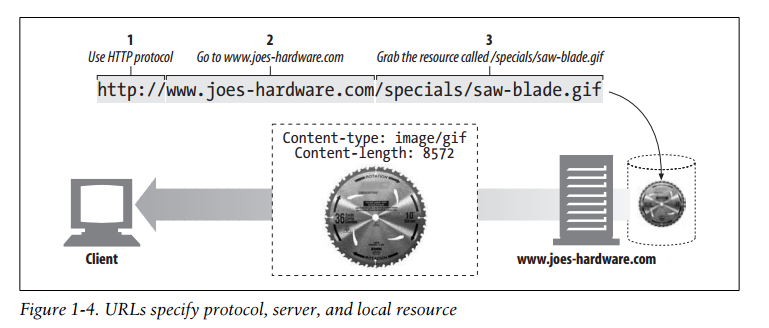 - The rest names a resource on the web server (e.g.,/specials/saw-blade.gif).