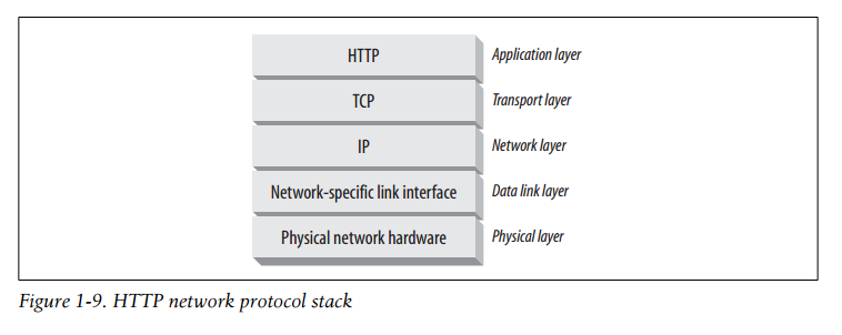In networking terms, the HTTP protocol is layered over TCP. HTTP uses TCP to transport its message data. Likewise, TCP is layered over IP (see Figure 1-9).