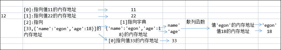 2 l2=[11,22,[33,{'name':'egon','age':18}]]