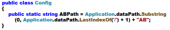 AssetBundle main = AssetBundle.LoadFromFile(Config.ABPath + "/AB");
