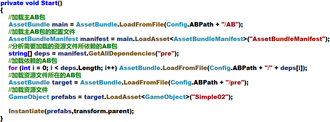 for (int i = 0; i < deps.Length; i++) AssetBundle.LoadFromFile(Config.ABPath + "/" + deps[i]);