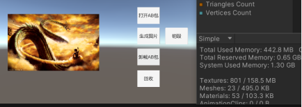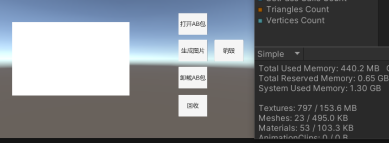 重复操作,Unity为懒回收:资源空闲后不回收。因此会一直存在于内存440.8->442.8MB;