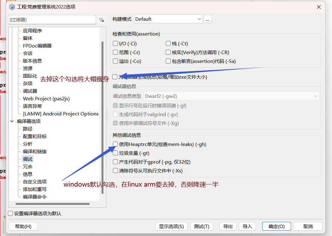 lazarusg 工程编译项设置注意事项