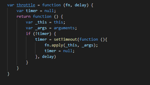 针对一些会频繁触发的事件如scroll、resize,如果正常绑定事件处理函数的话,有可能在很短的时间内多次连续触发事件,十分影响性能。