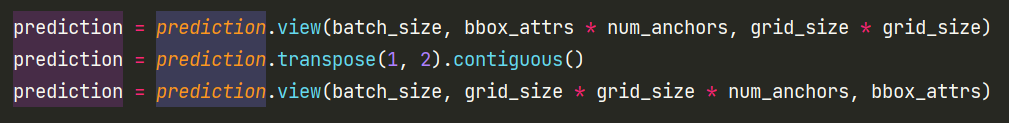 这样转换的好处是向量化操作(可以理解为将二维图片拍成了一维,实际上是[batch, bbox_attr*num_anchors, grid_size**2] 变 [batch, units, classes])