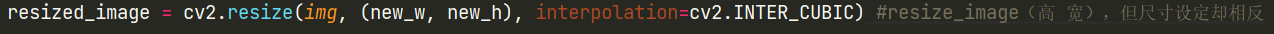 cv2.resize(Input尺寸,output尺寸) ,其中output设定尺寸是以 (宽,高)为序,但是resized_image结果仍然保持为(高*宽)形式;反人类设计