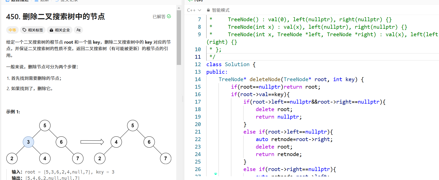 TreeNode* deleteNode(TreeNode* root, int key) {