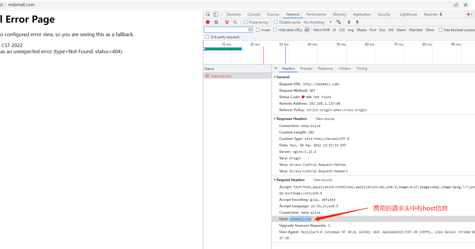 因此 我们需要在nginx 路由的时候配置 proxy_set_header Host $host