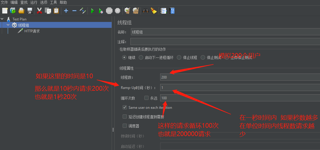 定义了线程组后 我们得继续为每个线程定义操作行为 也就是创建对应的取样器 然后我们需要在取样器中定义服务的信息