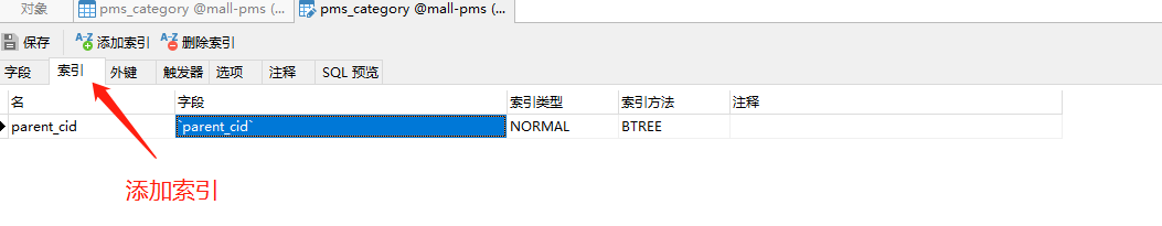 此时访问没有添加索引的字段 parent_cid 时间花费3毫秒