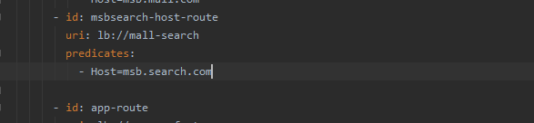 这时我们需要修改网关的服务 根据域名的访问 那么需要网关路由到我们得检索服务中