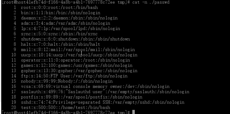 cat -n 15 ./passwd | tail -n 6
