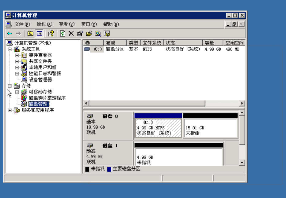 完成添加过程后会发现多了一块磁盘1,如下图: