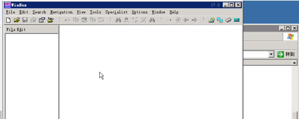 打开桌面tools\WinHex文件夹,双击运行WinHex程序,出现如下窗口