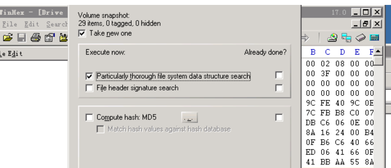 勾选“获取新快照”与“彻底搜索文件系统数据结构”,然后点击“确定”: