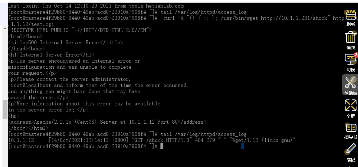 任务描述:判断10.1.1.12主机web服务的test.cgi是否存在破壳漏洞