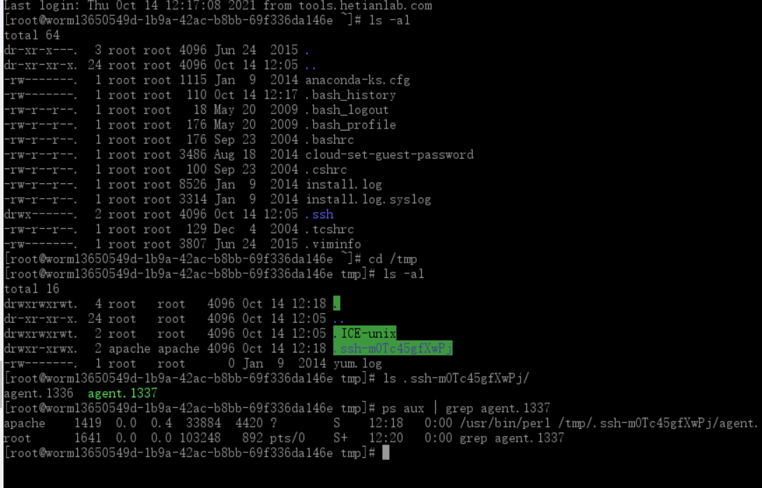 [root@worm-test1 tmp]# ps aux | grep agent.1337
