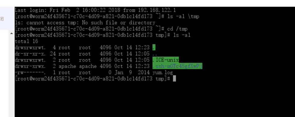 [root@worm-test1 tmp]# ls .ssh-mOTc45gfXwPj/