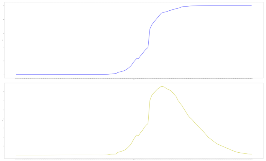 从图中可以明显看出,在4月8日武汉解封前,确诊人数已经是很长的一段直线了,非常感谢武汉人民!