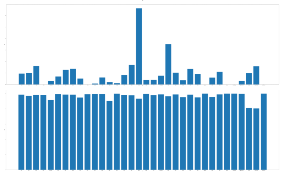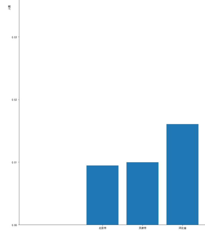 1 province = np.array(province_data['province'])#提取城市 2 province_confirmed = np.array(province_data['confirmed'])#提取所有病例 3 province_cured = np.array(province_data['cured'])#提取治愈病例 4 province_dead = np.array(province_data['dead'])#提取死亡病例 5 province_now = np.array(province_data['now'])#提取现存病例 6 province_death_ratio = np.array(province_data['death_ratio'])#提取死亡率 7 province_cure_ratio = np.array(province_data['cure_ratio'])#提取治愈率 8 11 #绘制全国各个省份确诊人数柱状图 12 plt.figure(figsize=(100,30)) 13 plt.xlabel("日期") 14 plt.ylabel("人数") 15 plt.bar(province,province_confirmed,linewidth=5.0,label="所有病例") 16 plt.show() 17 18 #绘制全国各个省份治愈病例柱状图 19 plt.figure(figsize=(100,30)) 20 plt.xlabel("日期") 21 plt.ylabel("人数") 22 plt.bar(province,province_cured,linewidth=5.0,label="所有病例") 23 plt.show() 24 25 #绘制全国各个省份死亡病例柱状图 26 plt.figure(figsize=(100,30)) 27 plt.xlabel("日期") 28 plt.ylabel("人数") 29 plt.bar(province,province_dead,linewidth=5.0,label="所有病例") 30 plt.show() 31 32 #绘制全国各个省份现存病例柱状图 33 plt.figure(figsize=(100,30)) 34 plt.xlabel("日期") 35 plt.ylabel("人数") 36 plt.bar(province,province_now,linewidth=5.0,label="所有病例") 37 plt.show() 38 39 #绘制全国各个省份死亡率柱状图 40 plt.figure(figsize=(100,30)) 41 plt.xlabel("日期") 42 plt.ylabel("人数") 43 plt.bar(province,province_death_ratio,linewidth=5.0,label="所有病例") 44 plt.show() 45 46 #绘制全国各个省份治愈率柱状图 47 plt.figure(figsize=(100,30)) 48 plt.xlabel("日期") 49 plt.ylabel("人数") 50 plt.bar(province,province_cure_ratio,linewidth=5.0,label="所有病例") 51 plt.show()