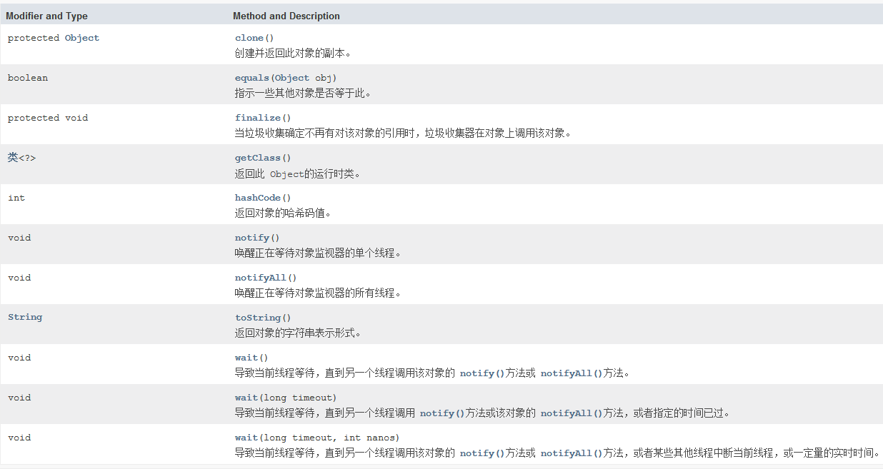 Object包含的十一个方法