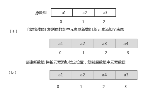 在堆内存中 创建数组-->复制数组的元素到新数组-->旧数组销毁(增删慢)