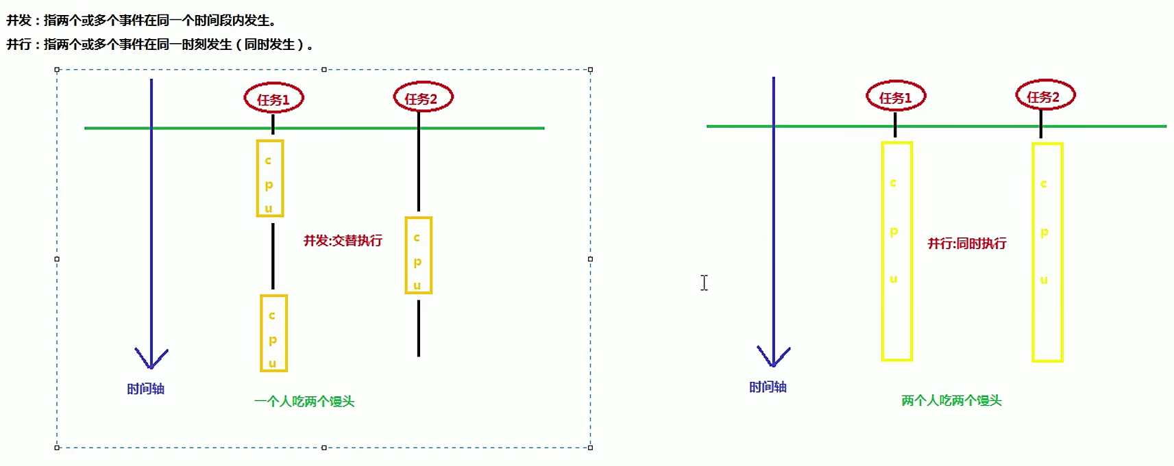 并行:指两个或多个事件在同一时刻发生(同时发生)