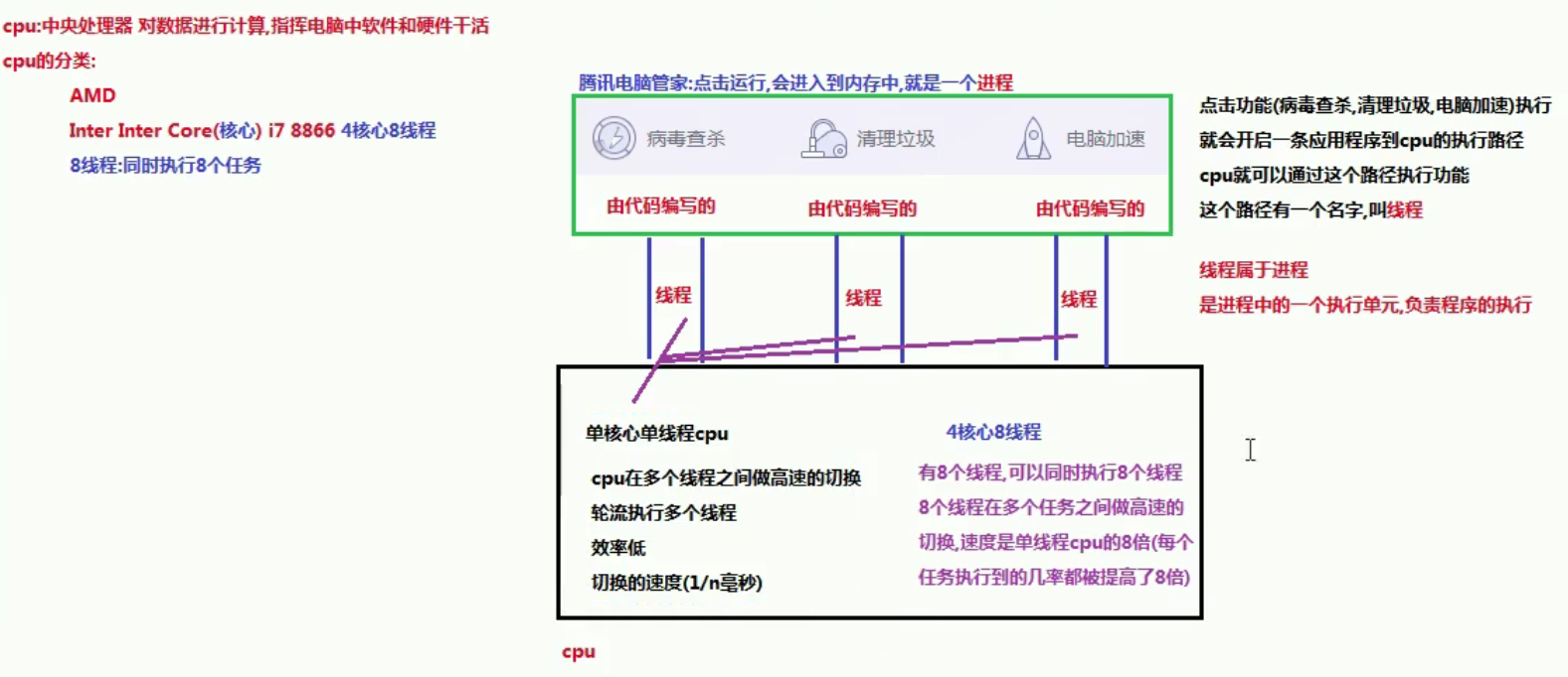 多线程程序并不能提高程序运行的速度,但能提高程序运行效率,让CPU使用率更高。