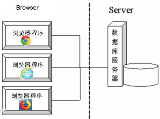 B/S架构:Browser/Server结构,是指浏览器和服务器结构,常见浏览器有火狐、谷歌等。