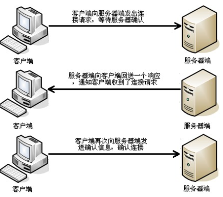 TCP三次握手:TCP协议中,在发送数据的准备阶段,客户端与服务器之间的三次交互,以保证连接的可靠