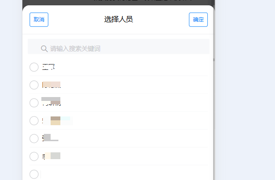 这里通过van-search控制列表搜索,展示带选择框的列表,效果如下