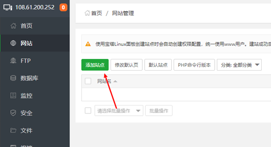 安装完成以后,就可以添加网站了,点击网站菜单,然后点击添加站点: