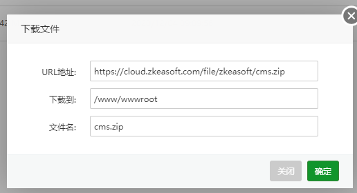然后输入纸壳CMS的下载地址:https://cloud.zkeasoft.com/file/zkeasoft/cms.zip进行下载: