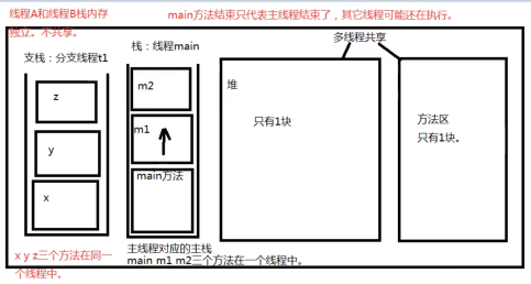 线程A和线程B:只要是一个进程里的,堆内存和方法区内存共享;但是栈内存独立,一个线程一个栈。