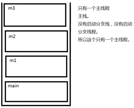 1 package XianChengFenXi; 2 3 4 //分析程序有几个线程 5 //除垃圾回收之外有几个线程 6 7 8 //因为程序只有一个栈,所以除了垃圾回收之外,只有一个线程 9 public class ThreadTest1 { 10 public static void main(String[] args){ 11 System.out.println("main begin"); 12 m1(); 13 System.out.println("main over"); 14 } 15 16 private static void m1(){ 17 System.out.println("m1 begin"); 18 m2(); 19 System.out.println("m1 over"); 20 } 21 22 private static void m2(){ 23 System.out.println("m2 begin"); 24 m3(); 25 System.out.println("m2 over"); 26 } 27 28 private static void m3(){ 29 System.out.println("m3 execute"); 30 } 31 32 }