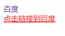 1 <!DOCTYPE html> 2 <html> 3 <head> 4 <meta charset="UTF-8"> 5 <title>CSS:引入外部独立的css文件</title> 6 <link rel="stylesheet" type="text/css" href="1.css"/> 7 </head> 8 <body> 9 <a href="http://www.baidu.com">百度</a><br /> 10 <span id="baiduSpan">点击链接到百度</span> 11 </body> 12 </html>