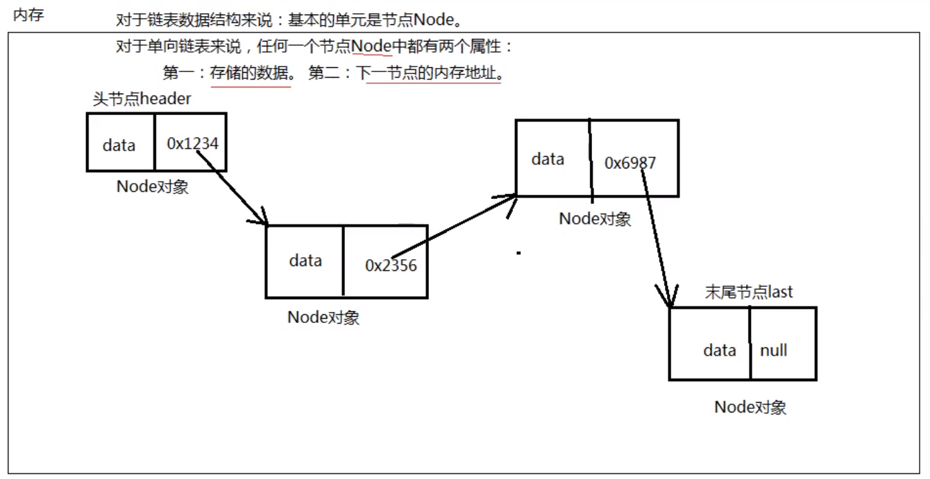 缺点:查询效率较低,每一次查询某个元素的时候都需要从头节点开始往后遍历。
