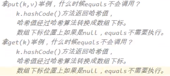 注:向Map集合中存,以及从Map集合中取,都是先调用key的HashCode方法,然后再调用equals方法。equals方法有可能调用,也有可能不调用。