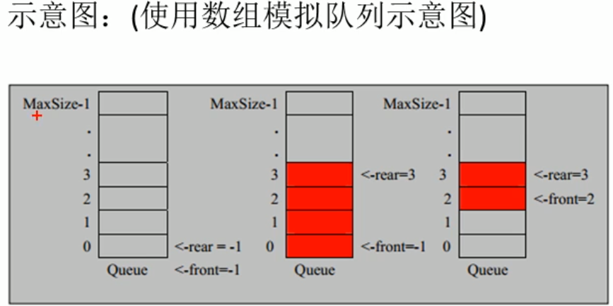 思路:在队列中空出一个位置,例如容量为3的队列,只放置2个元素,另一个位置空出来做缓冲。