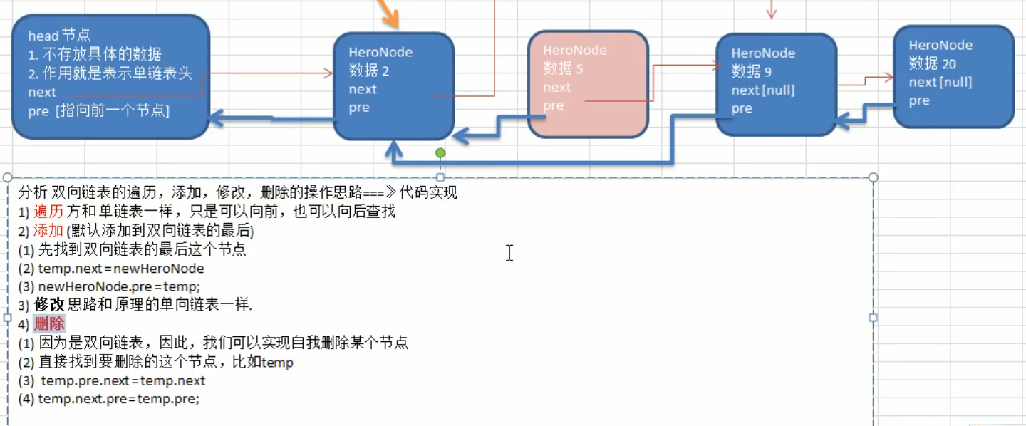 双向链表可以双向查找节点;双向链表可以进行自我删除