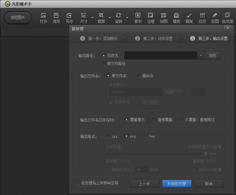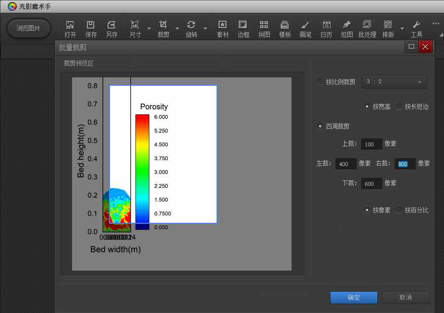 1.在利用批处理图片时,有时需要截取图片中的某一部分内容,如果用自带截屏软件,会造成后期处理时,图片的大小不一致,因此采用软件进行像素点的截取,可以利用光影魔术手里面自带的批处理这个工具。