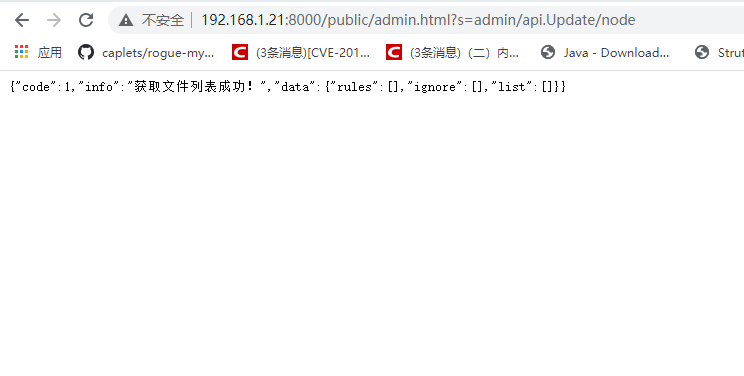 直接访问/public/admin.html?s=admin/api.Update/node这个url则会返回获取文件列表的json数据,而且不需要权限,不需要登录