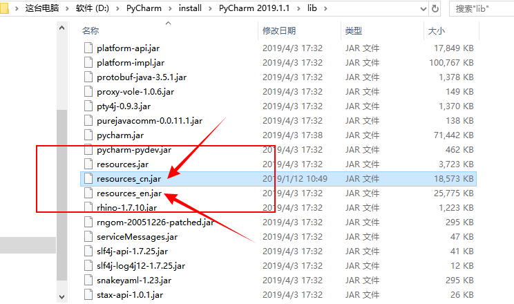提取码:2f3q将下载的压缩包进行解压,然后将“resources_cn.jar” 文件复制到安装目录下的lib文件中,重启PyCharm生效。