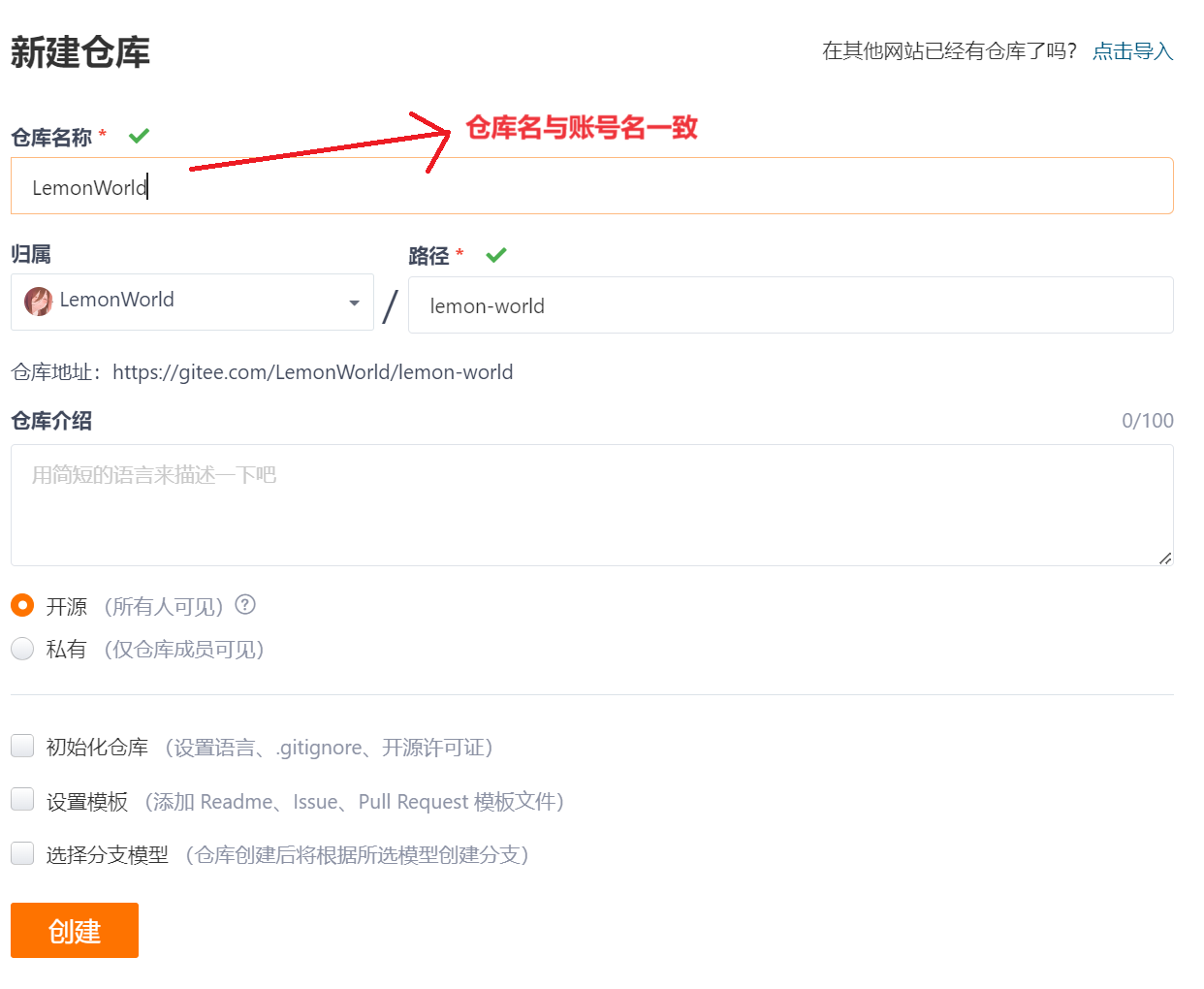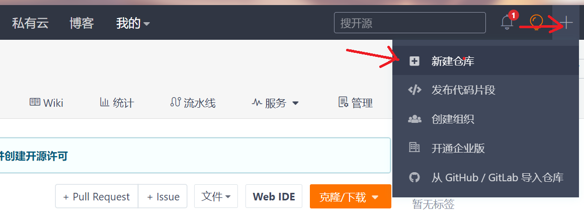 首先需要注册gitee(码云)的账号,然后在创建一个仓库。