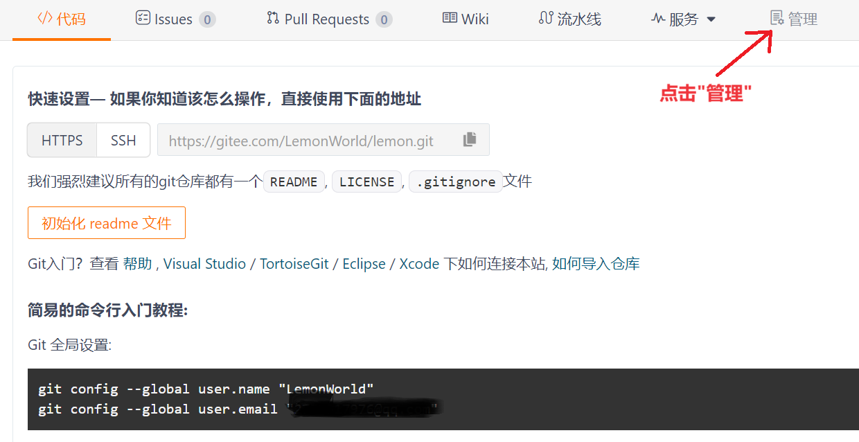 git config --global user.email "邮箱" # 邮箱是你创建gitee用的邮箱